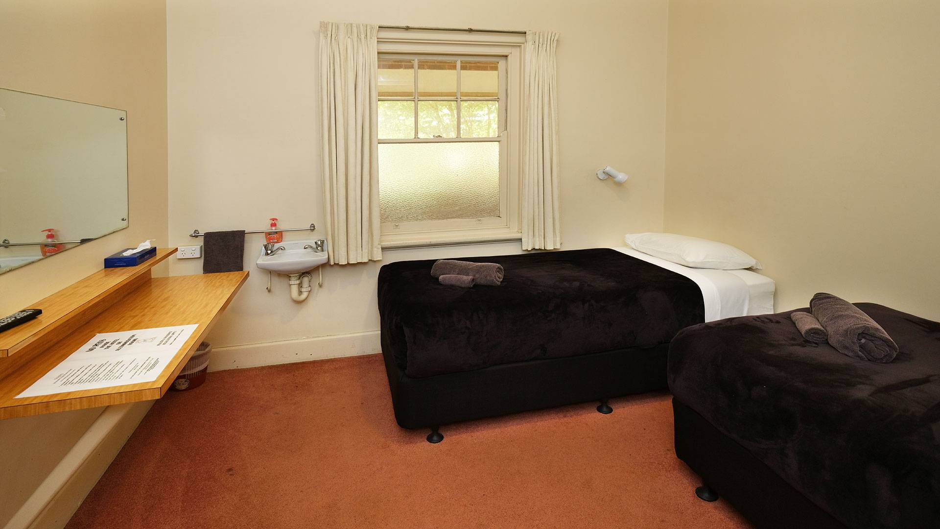 Our twin rooms feature a wardrobe, heating, flat-screen TV and wash basin for your convenience. These rooms offer 2 comfortable beds.