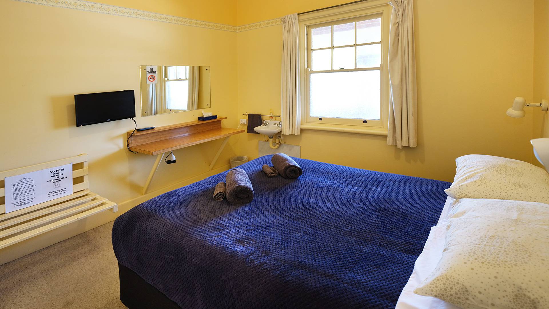 Our hotel rooms feature a wardrobe, heating, flat-screen TV and wash basin for your convenience, all with very comfortable beds. The bathroom facilities are shared between all guest rooms.